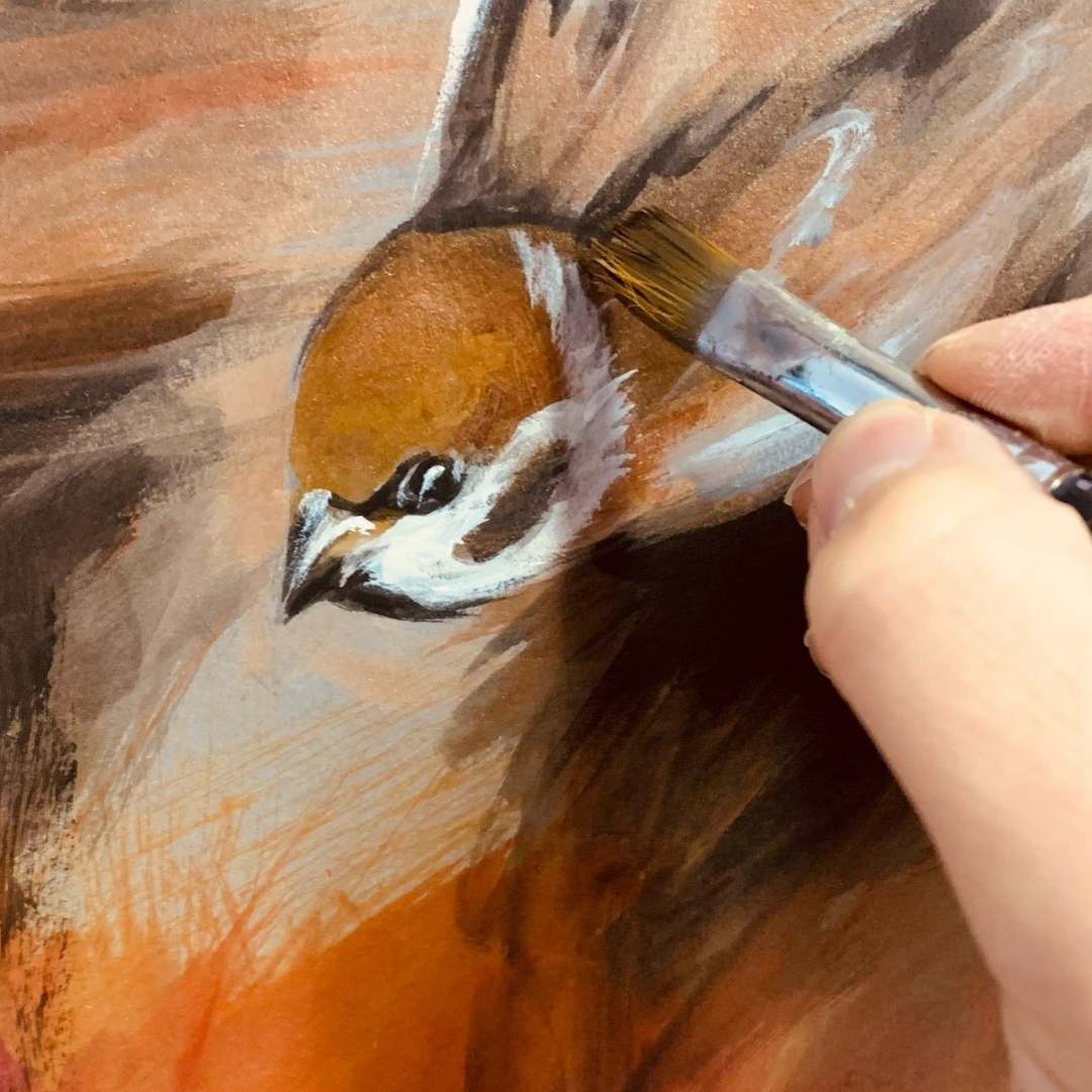 Über die Jahre entwickelte ich eine Kombination aus grauem Karton, Acryl und Pastell, mit der ich meinen lebendigen